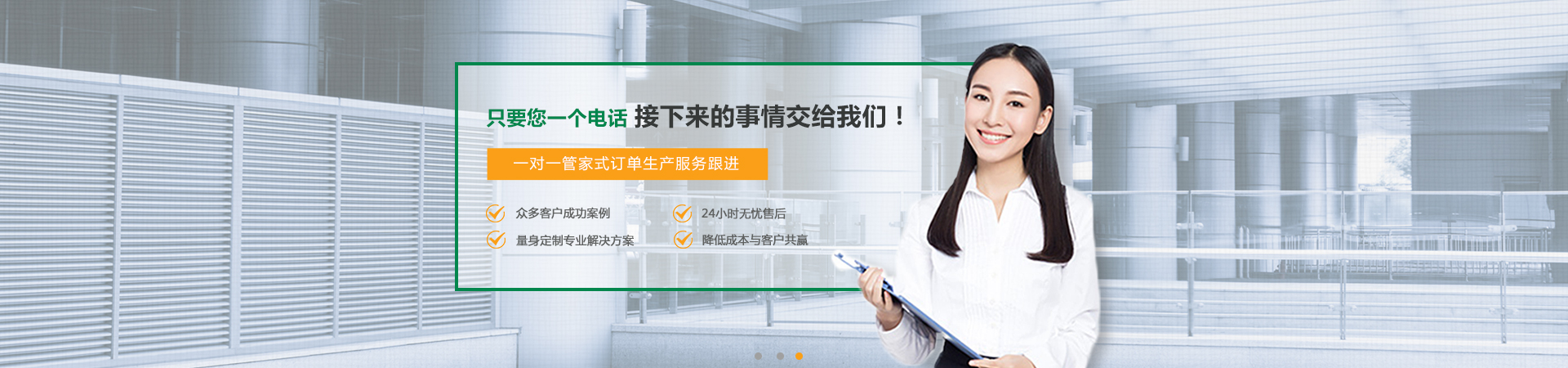 只要您的一個(gè)電話,接下來(lái)的事情就交給我們,根據(jù)您的需求提供整體的產(chǎn)品解決方案和技術(shù)服務(wù)。